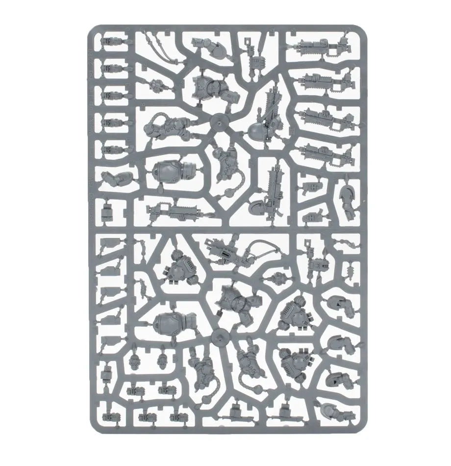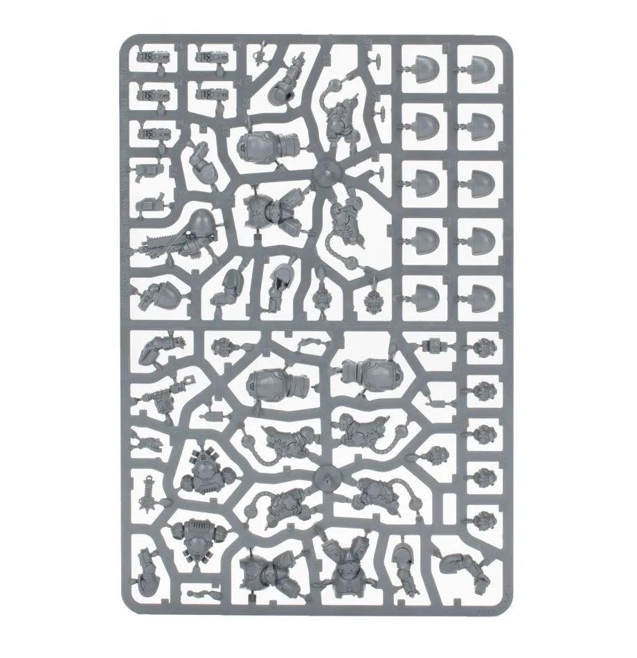Ce kit plastique en 120 composants permet d'assembler cinq Intercessors lourds, et il est fourni avec cinq socles ronds Citadel de 40mm. L'escouade entière peut être équipée de fusils bolters lourds, de fusils bolters Hellstorm ou de fusils bolters Executor, et un membre peut recevoir un bolter lourd, un bolter lourd Hellstorm, ou un bolter lourd Executor. La boîte contient aussi une planche de décalcomanies pour Space Marines.