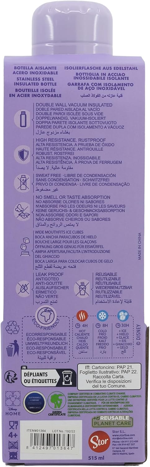 Bouteille d'eau thermale en acier inoxydable à double paroi pour isoler et maintenir la température. Capacité de 515 ml. Décorée avec les personnages les plus célèbres du monde du cinéma et de la télévision.