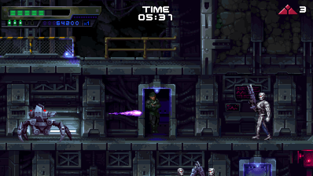 Vivez les événements animés de « Terminator 2 : Le Jugement Dernier » à travers des illustrations pixélisées magnifiques et un gameplay d’arcade rempli d’action !