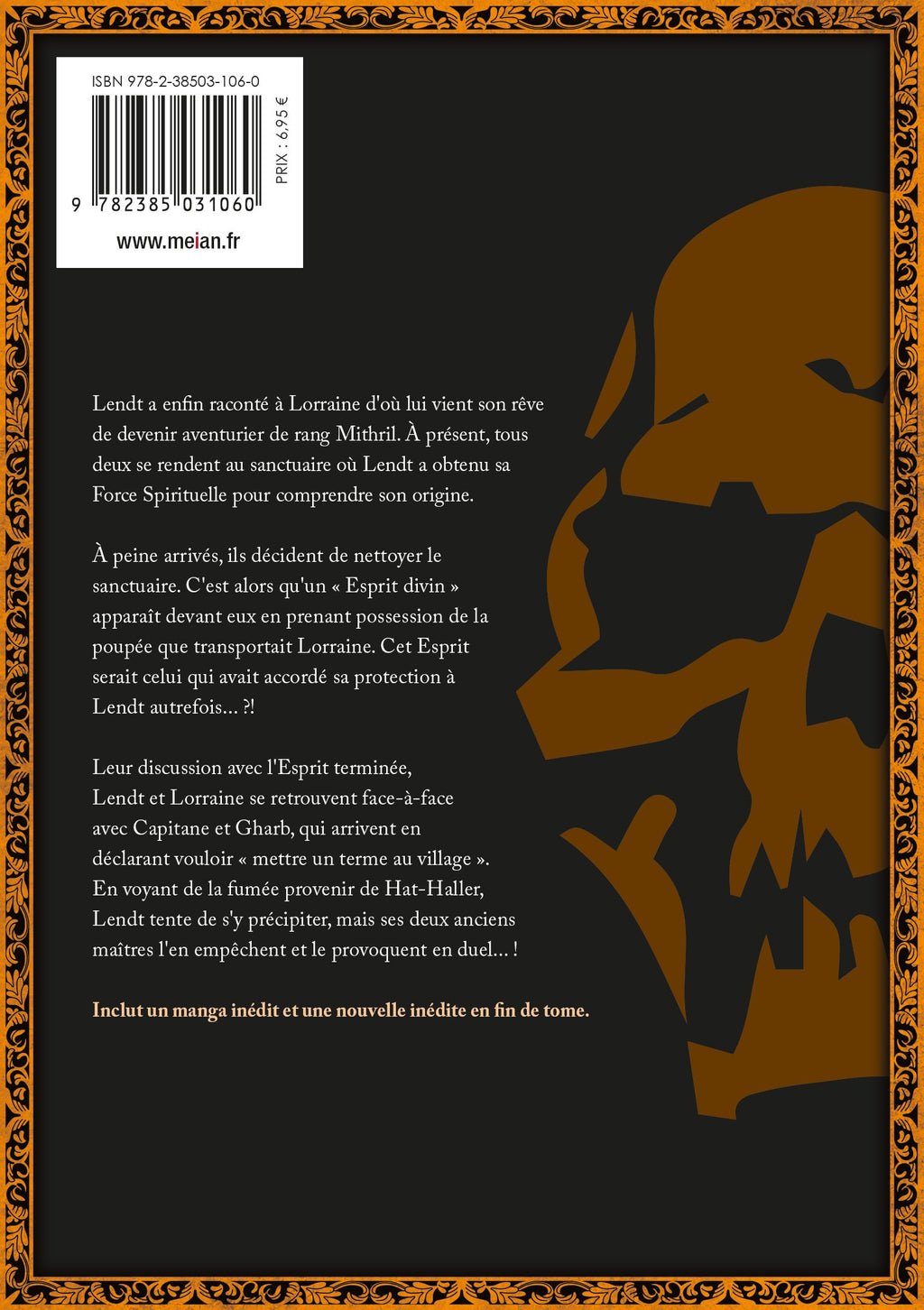 Leur discussion avec l'Esprit terminée, Lendt et Lorraine se retrouvent face-à-face avec Capitane et Gharb, qui arrivent en déclarant vouloir " mettre un terme au village ". En voyant de la fumée provenir de Hat-Haller, Lendt tente de s'y précipiter, mais ses deux anciens maîtres l'en empêchent et le provoquent en duel... ! Inclus un manga inédit et une nouvelle inédite en fin de tome.
