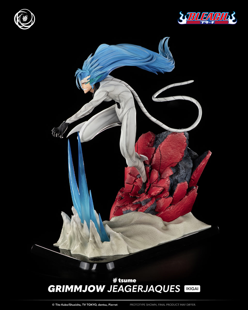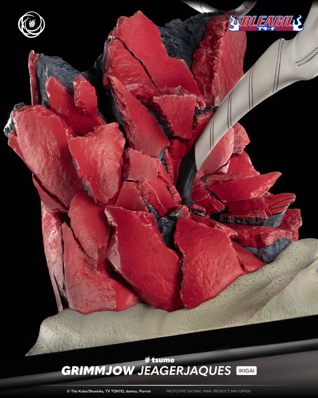 Griffes d’énergie pure, les Desgarrón sont l’attaque ultime de Grimmjow dans sa forme libérée. Sculptées en plein mouvement, elles semblent fendre l’air et s’abattre sur la base dans un effet de souffle spectaculaire. Grimmjow Jaggerjack est ici représenté dans sa forme Resurrección Pantera, la transformation qui libère toute sa férocité animale. Cette pose prête à bondir, sur fond de combat effréné, incarne à merveille l’esprit brutal et indomptable du personnage.