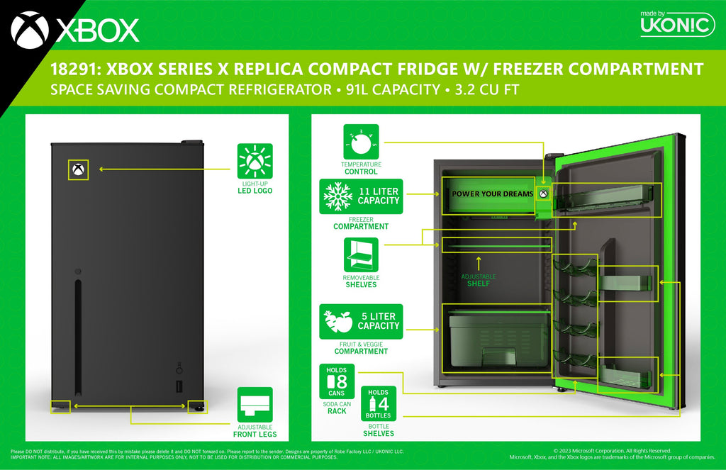 Ce réfrigérateur compact Xbox Series X est plus que cela. Plus qu'une glacière thermoélectrique, cet appareil est un véritable réfrigérateur avec contrôle de la température (sur le logo de la sphère Xbox, rien de moins) et un compartiment réfrigérant portant la mention « Power Your Dreams » (alimentez vos rêves). C'est une bonne chose si vous rêvez d'une boisson glacée, car cette bête mesure un peu moins de 3 pouces de haut et peut contenir plus d'une douzaine de boissons rien que dans sa porte. Cette capacité d'encas permettra même aux joueurs les plus assidus de jouer jusqu'aux petites heures de la nuit. C'est la solution idéale pour les dortoirs, les studios, les bureaux ou tout autre endroit où l'espace est compté et où l'on mange. Partout, en somme.
