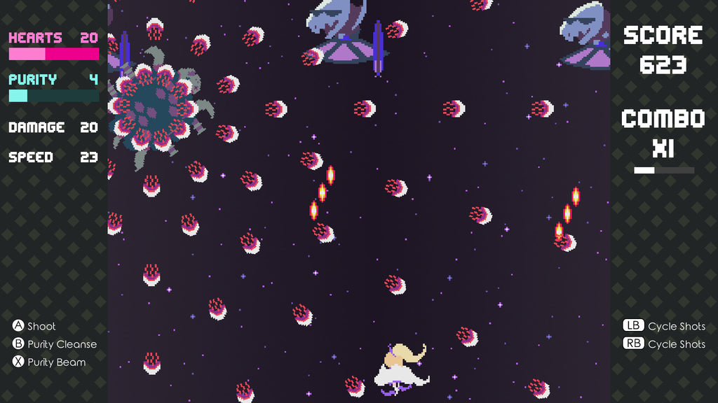 Dans cette galaxie où chaque action signifie une réaction, vous incarnez la Vierge, la Sainte Reine (souvent appelée Dreadful Queen par les hérétiques). Guidez la Vierge alors qu'elle s'embarque dans une quête cosmique tortueuse et impitoyable pour ramener l'âge d'or, une période de paix, de symétrie et d'équilibre - ou du moins c'est ce qu'elle pense. Apportez le chaos dans les royaumes du zodiaque et laissez une traînée de poussière d'étoiles sur votre chemin, tout cela pour aider les autres à se conformer à la vision du monde excessivement juste de la Vierge et à voir la lumière.