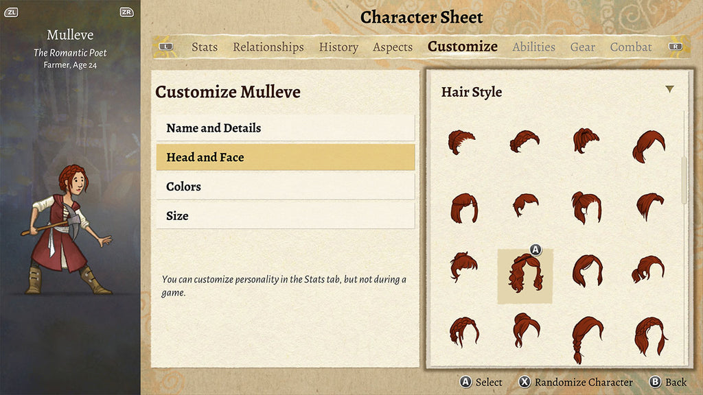 Chaque héros est généré aléatoirement avec une histoire, une personnalité et une apparence uniques, ainsi que ses propres relations avec les autres. Ces aspects pourront changer et se développer au fil du jeu, à mesure que les personnages vieilliront, seront confrontés à des mystères et surmonteront des défis.